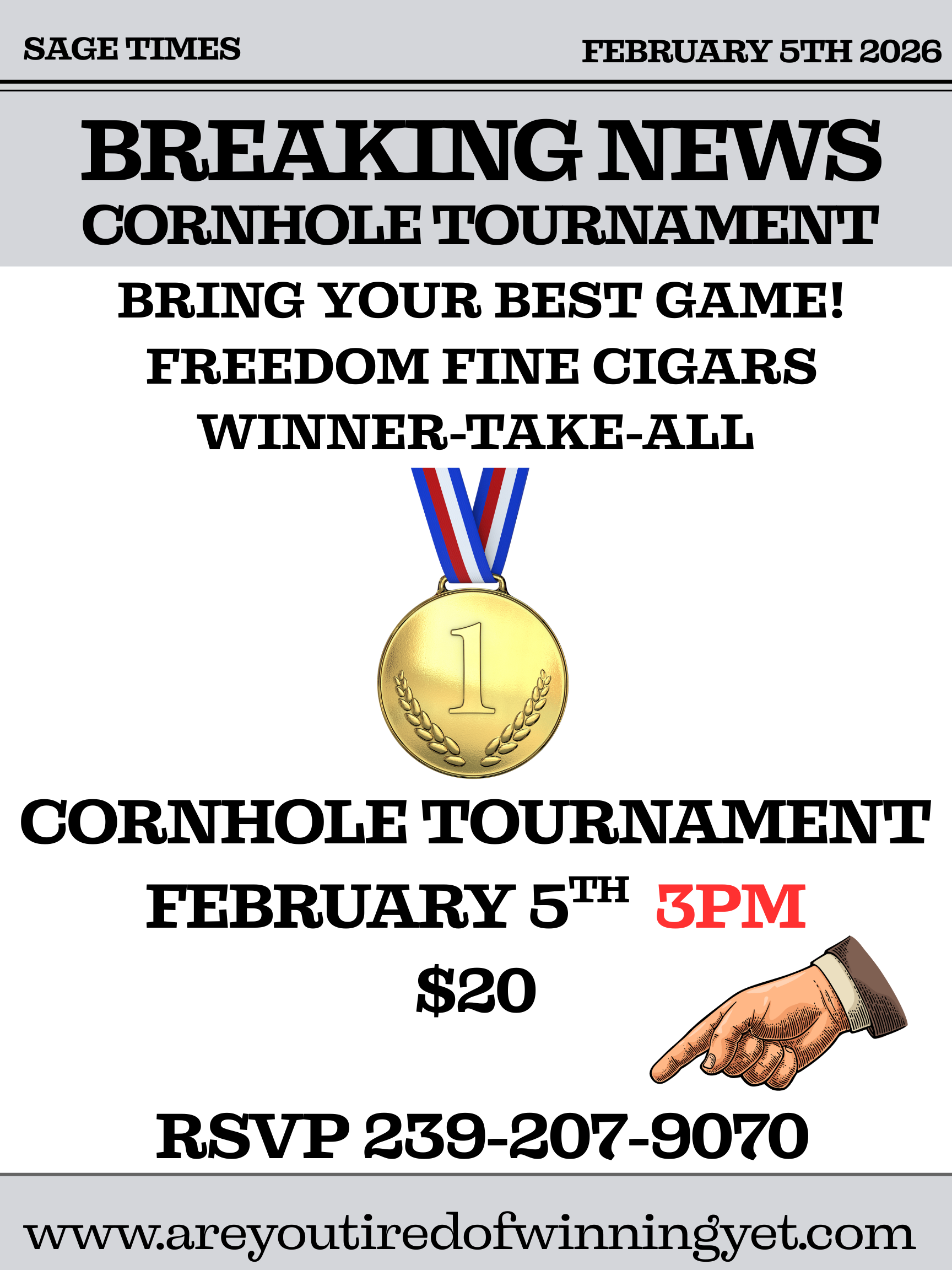 Cigar Tastings, Wine Tastings, Wine Tasting Newsletter, Backgammon Tournaments, Cornhole Tournaments, Charity Events and enduring camaraderie! If you would like to receive email updates on what’s coming, please scroll down to "CONTACT US” at the bottom of the page and request to be added to our email list. I look forward to sharing memorable moments with you all.